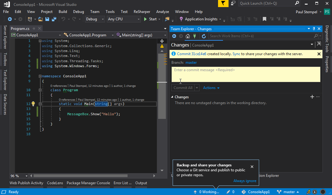 Zusammenarbeit in Visual Studio