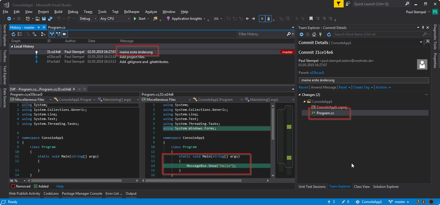 git commit -m "meine erste änderung"