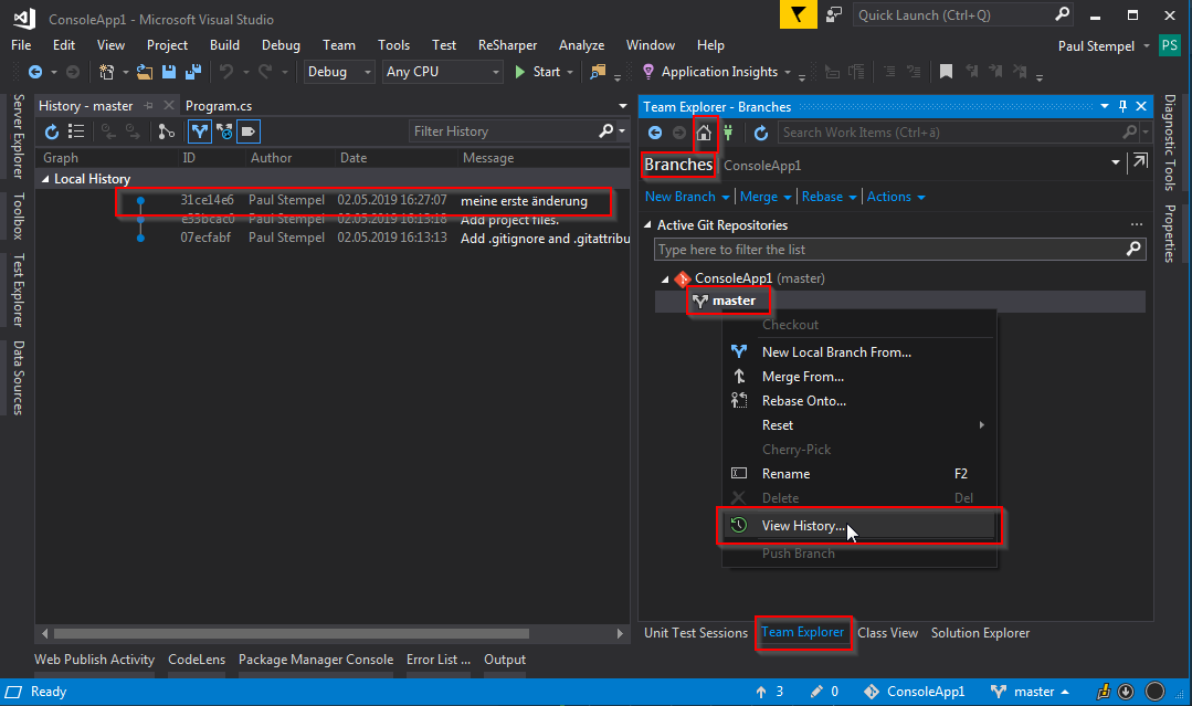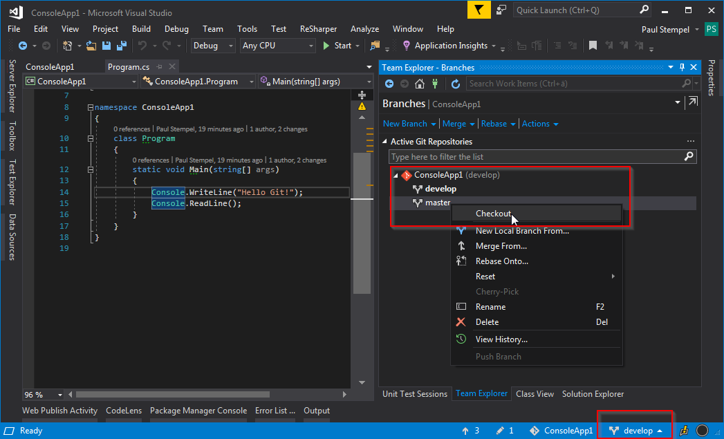 Branchse in Visual Studio
